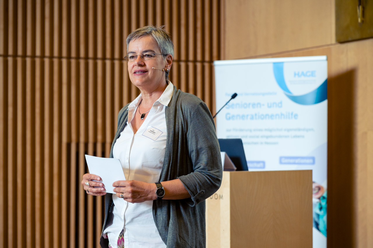 „Wir müssen Quartiere so gestalten, dass ältere Menschen nicht nur versorgt werden, sondern Teil einer lebendigen Gemeinschaft bleiben“, betonte Dr. Sonja Optendrenk, Staatssekretärin im Hessischen Ministerium für Familie, Senioren, Sport, Gesundheit und Pflege (HMFG) in ihrem Grußwort.