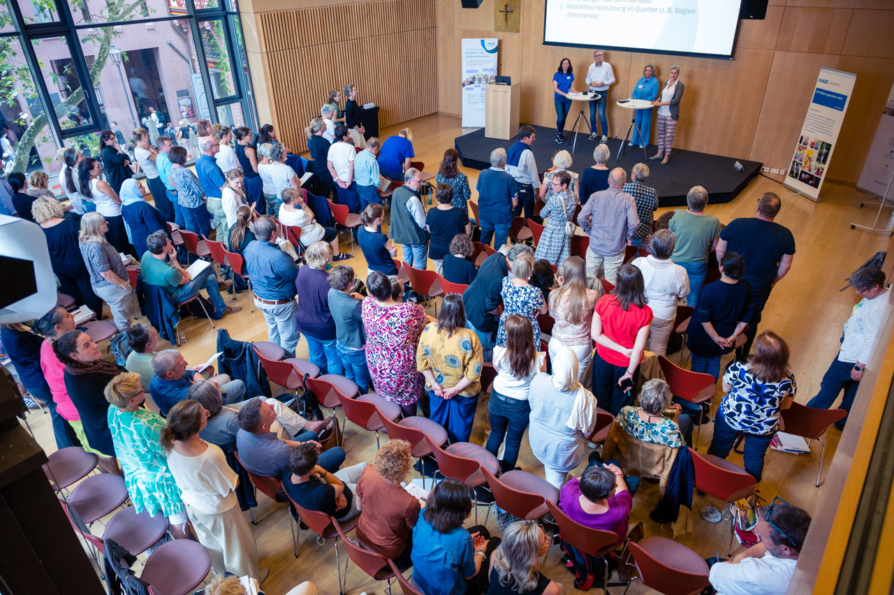 Rund 150 Teilnehmende aus Kommunalverwaltungen, Stadtentwicklung, Sozial- und Altenplanung, Wohlfahrtsverbänden, Quartiersprojekten sowie aus Ehrenamt und Selbsthilfe kamen im Haus am Dom in Frankfurt zusammen. Sie diskutierten zentrale Fragen einer generationenfreundlichen Quartiersgestaltung und erhielten anhand von Praxisbeispielen viele Inspirationen für die Umsetzung vor Ort.