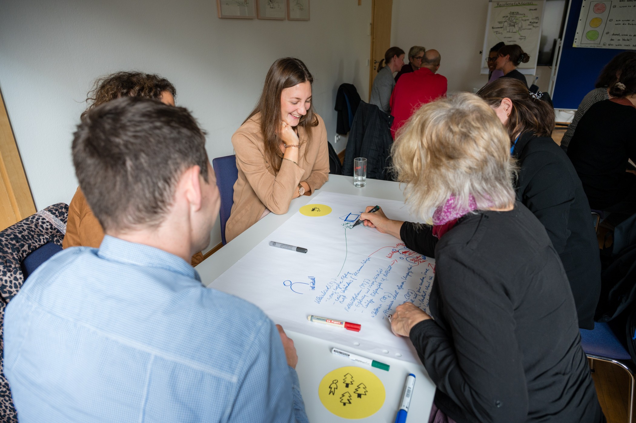 Viele Teilnehmende äußerten den Wunsch, häufiger über Klima und Gefühle zu sprechen, Emotionen Raum zu geben und Klimakommunikation aktiv zu gestalten – mit Wissen, Mut und Offenheit. Einige fühlten sich inspiriert, eigene niedrigschwellige Angebote wie ein „Klimacafé“ ins Leben zu rufen. Zugleich wurde betont, dass die Förderung psychischer Gesundheit bei Selbstfürsorge und einem sinnorientierten Umgang mit Belastungen beginnt und bereits im Kindesalter durch resilienzfördernde Strukturen unterstützt werden sollte.