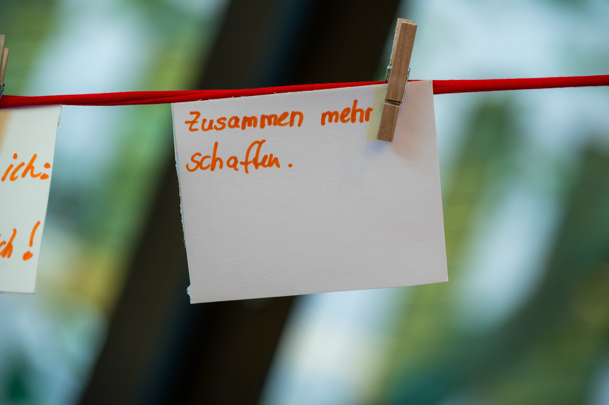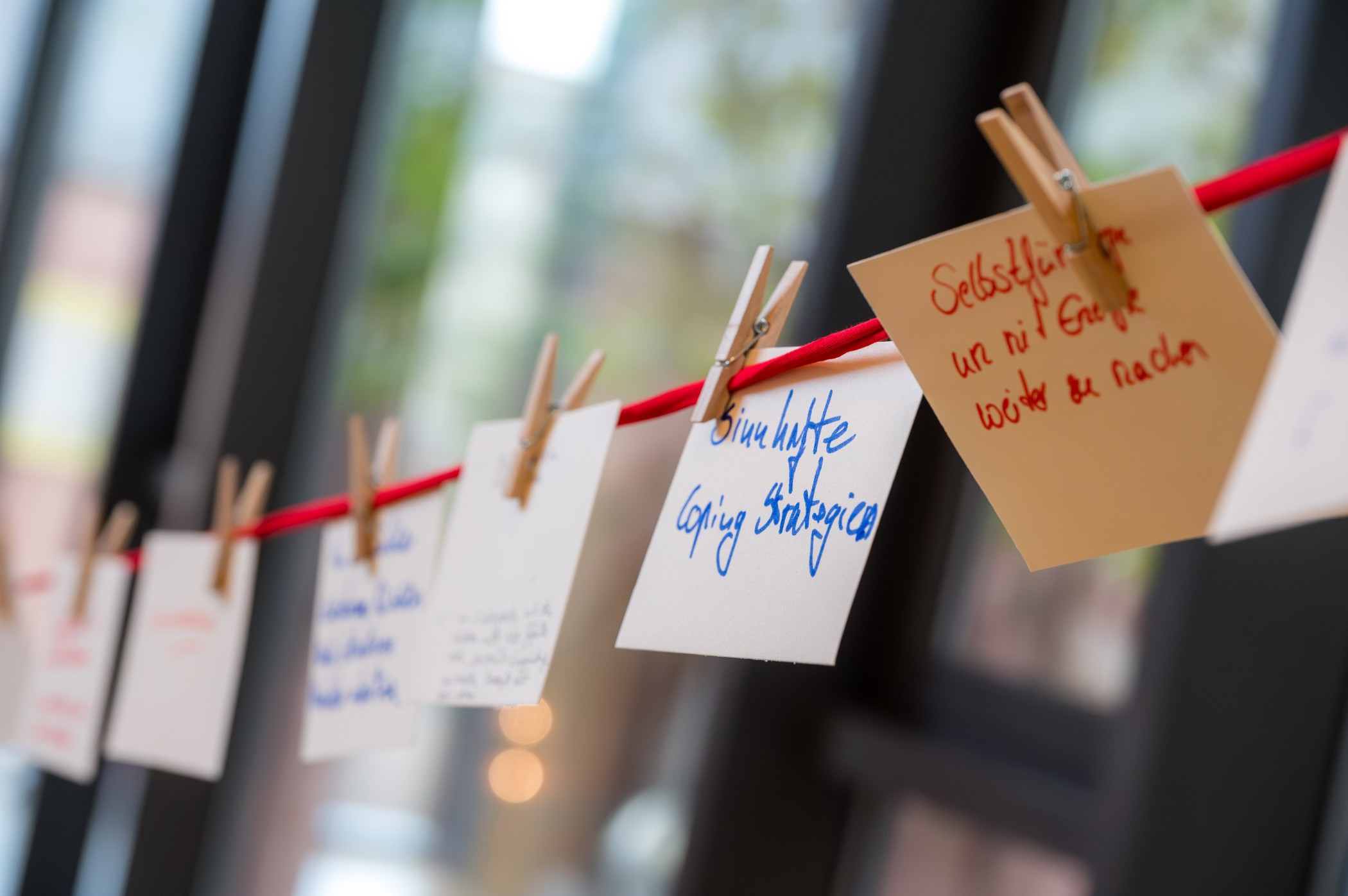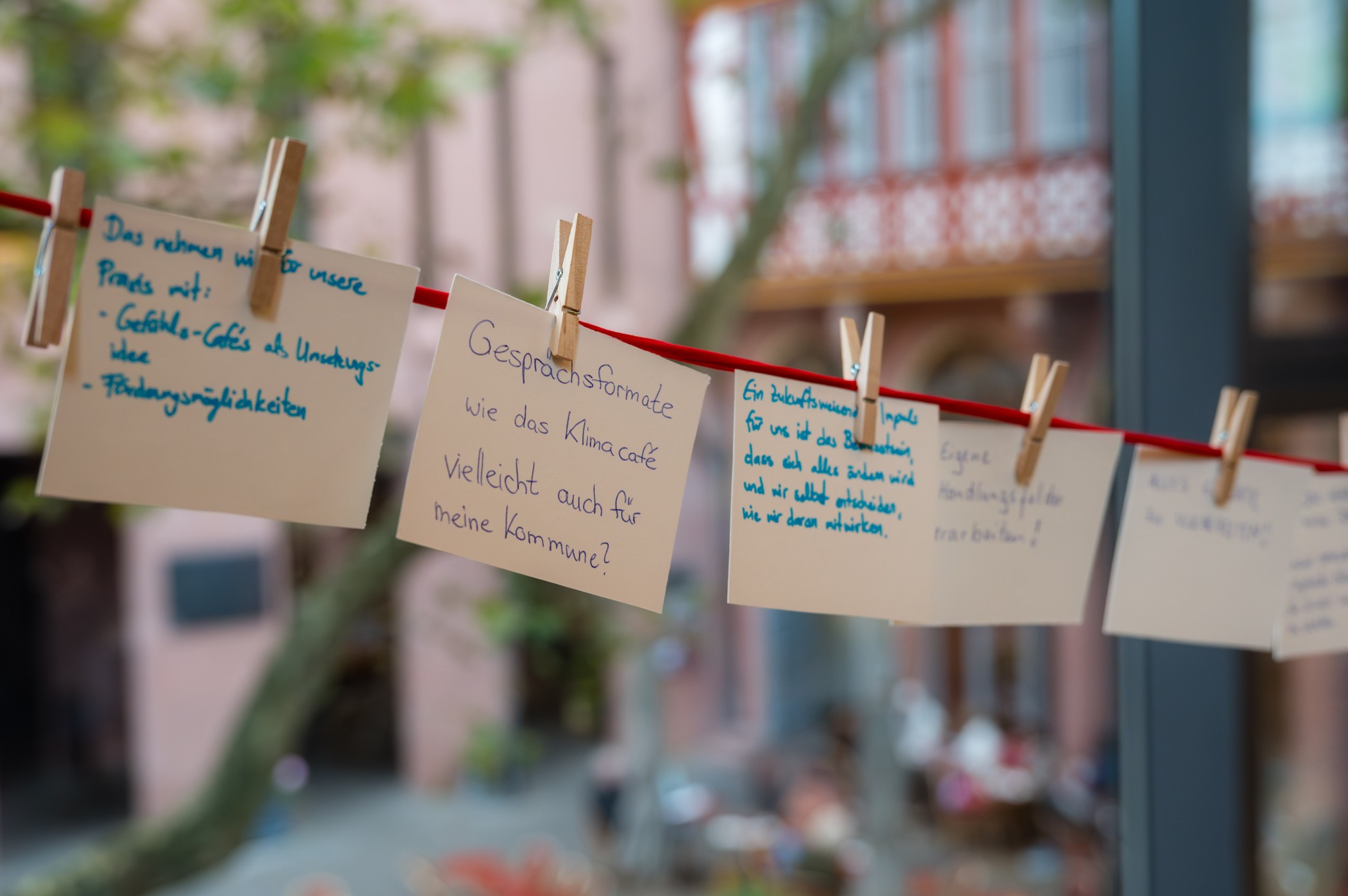 Zum Abschluss notierten die Teilnehmenden Impulse und Anregungen für den Praxisalltag auf Karten und befestigten diese an einem roten Faden. Dabei wurde deutlich, dass ein großes Interesse daran besteht, das Thema Klima künftig stärker in den beruflichen und persönlichen Alltag einzubringen.