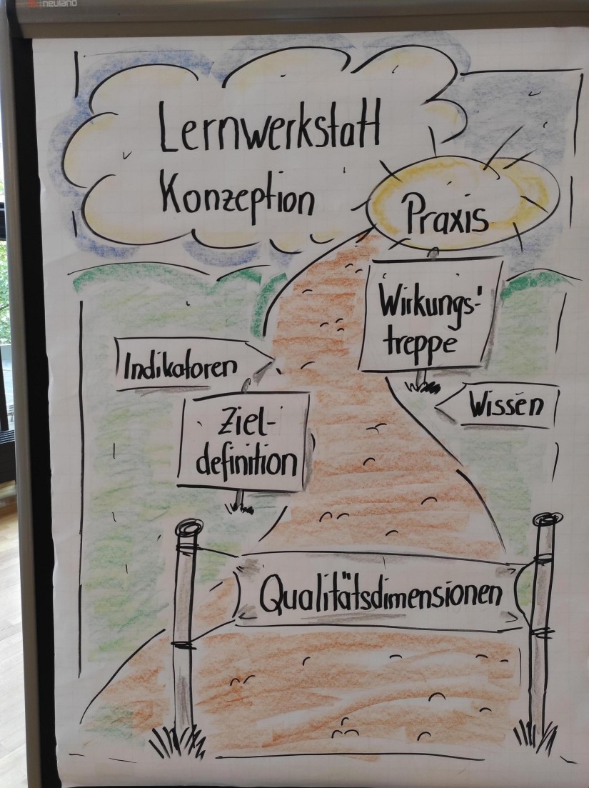 In dieser Lernwerkstatt befassten sich die Teilnehmenden in abwechselnden Plenumsdiskussionen und Kleingruppenarbeiten vertieft mit dem Kriterium „Konzeption“.